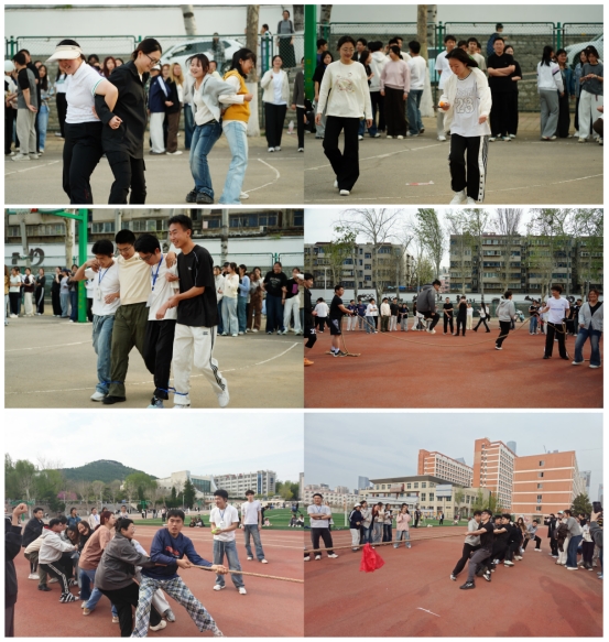 本次趣味运动会以“趣享运动,活力民商”为主题,设置了集趣味性与协作性于一体的多个比赛项目。赛场上,同学们全身心投入比赛,既有速度与技巧的较量,也有力量与默契的考验,场边欢呼声此起彼伏,气氛热烈而轻松。