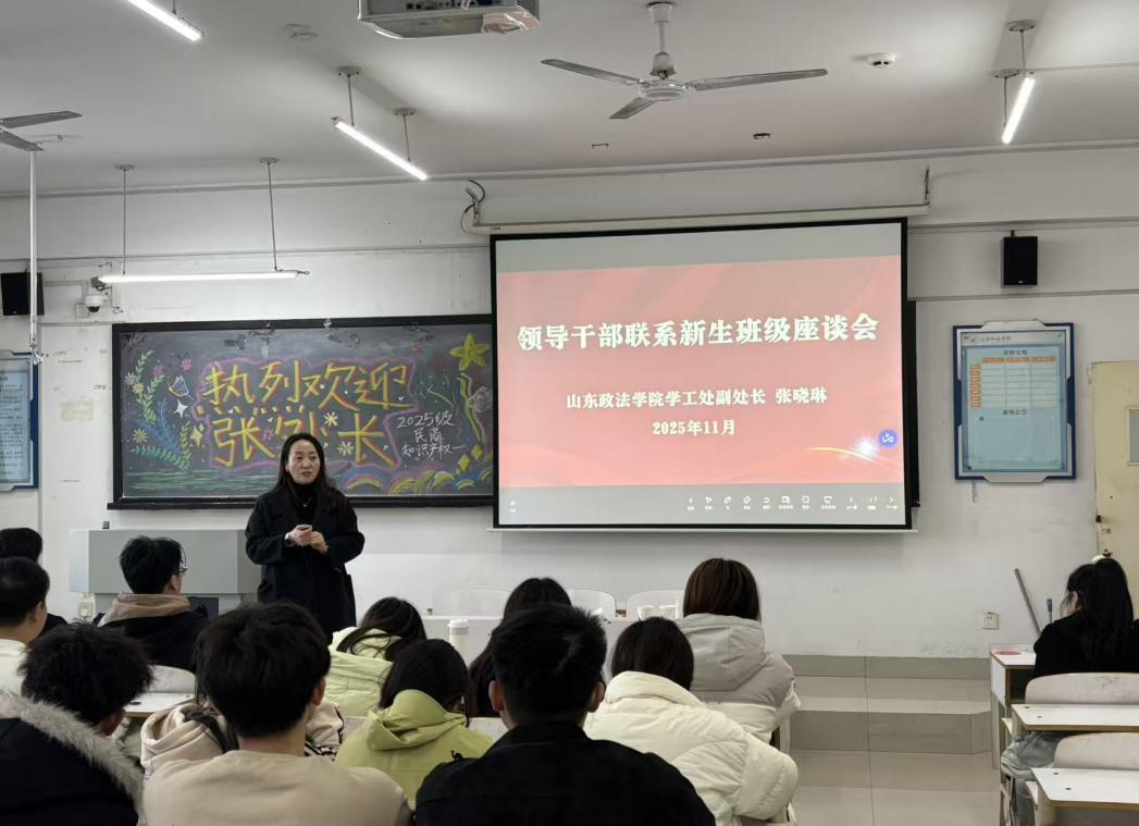 11月19日,学生工作处副处长张晓琳走进2025级知识产权1班,与同学们开展座谈交流。她勉励同学们珍惜大学时光,做到“不空谈、不虚度、不后悔”,扎实学习、积极实践,努力成长为德法兼修的高素质法治人才。张晓琳强调,要积极参与课外活动,主动调适压力,在遇到困难时及时向老师、同学与家长寻求帮助,始终保持乐观向上的心理状态。