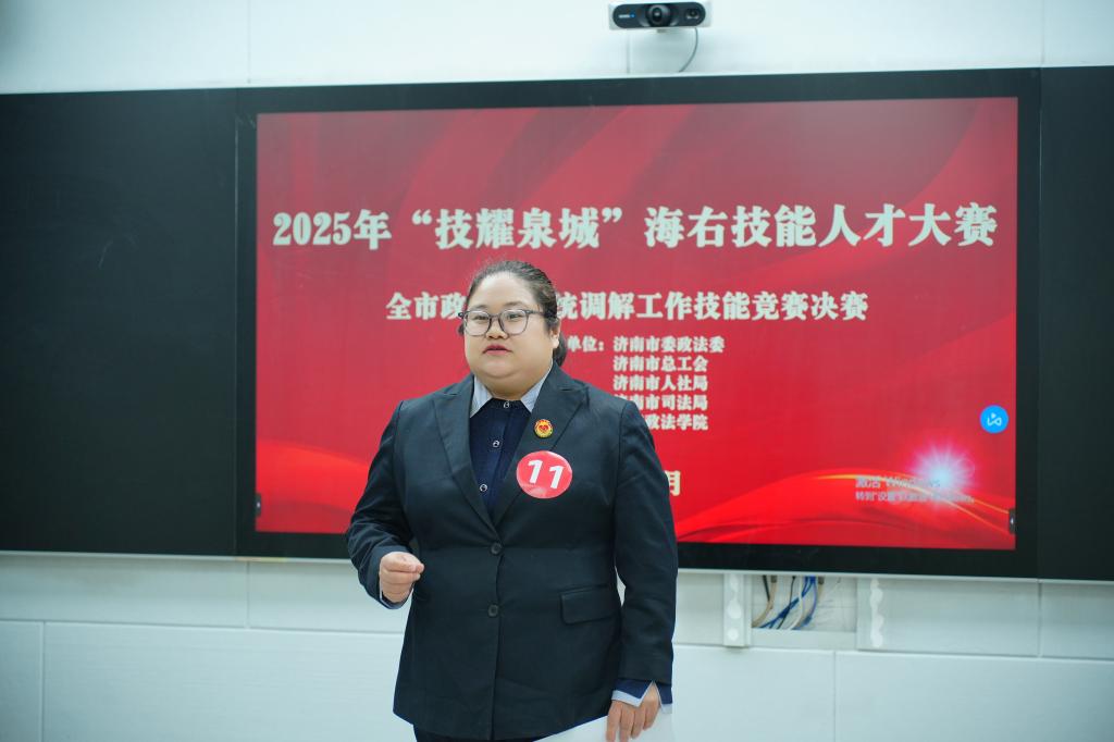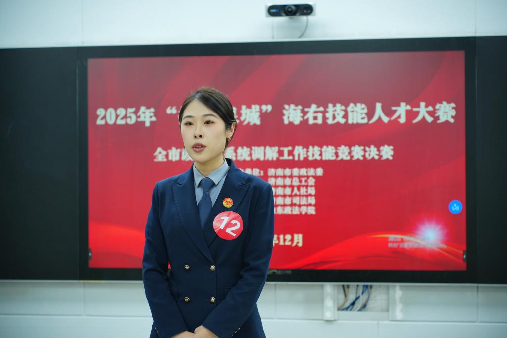 为深化调解人才队伍建设,提升调解工作专业技能,2025年12月24日至25日,“技耀泉城”海右技能人才大赛济南市政法委系统调解工作技能竞赛在我校顺利举办。本次活动由济南市委政法委、济南市总工会、济南市人社局、济南市司法局联合主办,民商法学院承办。来自济南市各政法单位的共34名选手参加了此次比赛。