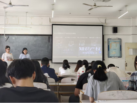 在知识产权宣传周期间,学院知识产权教研室教师坚守课堂教学主阵地,向同学们专题讲授国家知识产权宣传周的设立背景与重要意义,深入阐释“保护知识产权就是保护创新”的发展理念。通过课堂微宣讲,引导青年学子筑牢专业思想根基,增强投身知识产权强国建设的责任感与使命感。