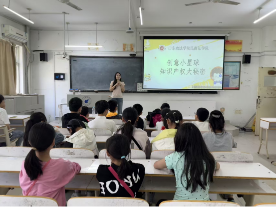 4月21日,民商法学院大学生法治辅导员宣讲团走进济南市洪家楼小学,开展知识产权主题普法宣讲。宣讲团成员用通俗易懂的语言讲解商标、专利、著作权的基本概念,并结合生活实例引导孩子们树立尊重知识、崇尚创新的意识。