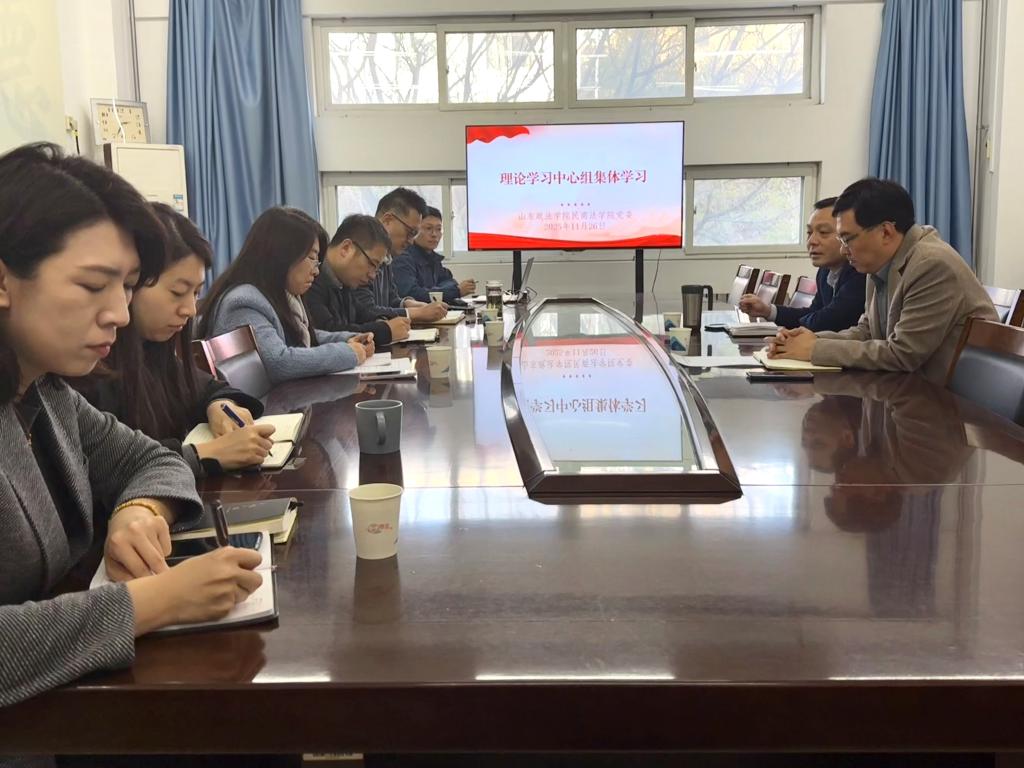 11月26日,民商法学院召开党委理论学习中心组专题学习会议,深入学习领会习近平总书记重要指示精神和中央全面依法治国工作会议精神,并结合学院实际研究贯彻落实工作。民商法学院党委书记李宁主持会议。学院党委理论学习中心组成员参加学习。